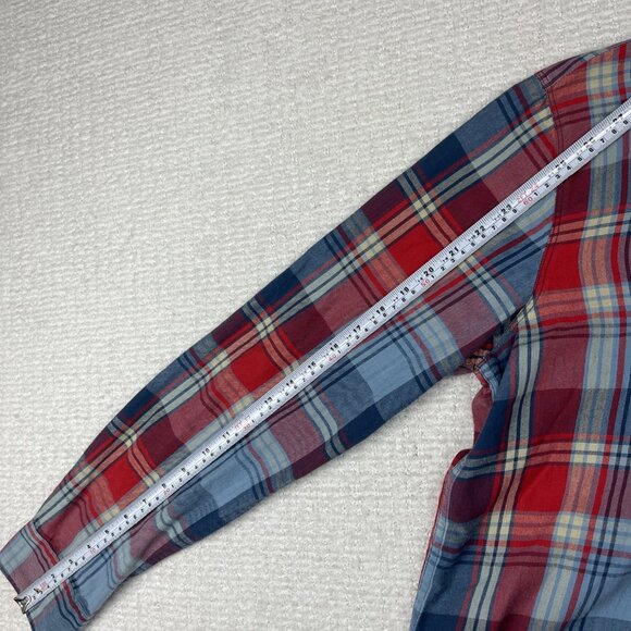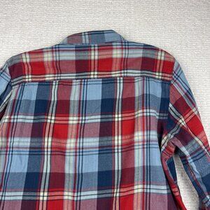 Y2K Element Plaid Flannel Check Long Sleeve Button Shirt Men Size L Red / Blue