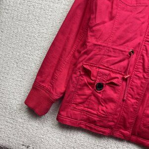 Y2K FOX Riders Company Pink Canvas Jacket Sherpa Fleece Wom L Racing Pockets