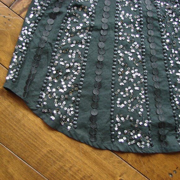 - gorgeous unique sleeveless tank style top features lots of decorative beads, sequins, etc. both shiny and sparkly and matte