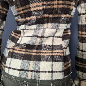 Y2K Fitted Plaid Pea Coat Jacket Size XS Brown Beige Wool Blend Fall Winter
