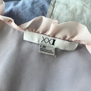 Y2K Forever 21 Womens Pastel Baby Pink Ruffle Mesh Button Up Ruffle Puff Sleeve Blouse