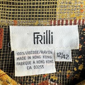 Vintage Frilli Womens Multi-Coloured Rayon Leaf Patchwork Nature Design Cottagecore Boho Blouse