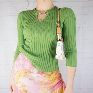 🍓Y2K GREEN RIBBED LONG SLEEVE WITH CHAIN COLLAR🍓