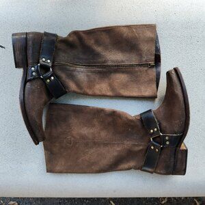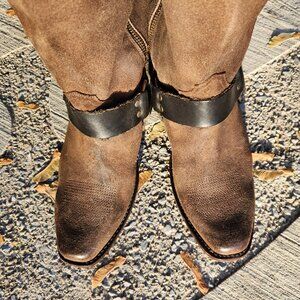 EUC, authentic, vintage, Golden Goose, tall boots, strap, harness, biker boots, moto boots, western, cowboy boots, Y2K, Italian, artisan craftsmanship, distressed, statement, streetstyle, rocker, boho, bohemian, festival, city, casual chic, weekend, fall, trendy, fashion, unisex, premium quality, timeless, wanderlust, wardrobe staple, everyday, comfortable, comfy, bikercore, cowgirl, sturdy, edgy, effortlessly cool, wide calf, extended calf