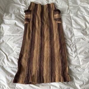 Totally groovy vintage maxi skirt with bold brown stripes and a cozy wool blend. Super Bratz doll vibes! Made with quality in Japan.
