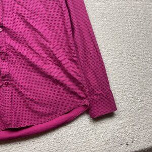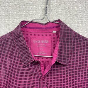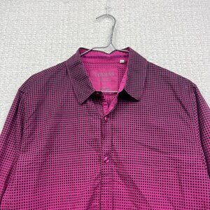 Y2K Guess Button Up Shirt Men L Slim Fit Long Sleeve Psychedelic Geometric AOP. L'état est Pre-owned - Good. Expédition avec Canada Post Expedited Parcel.