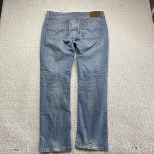 Y2K Guess Jeans Men's 36x32 Lincoln Slim Straight Light Blue Distressed Denim