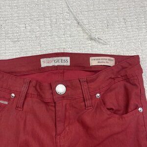 Y2K Guess Low Rise Super Skinny Jeans Bright Cherry Red Maxine Fit Stretch Read