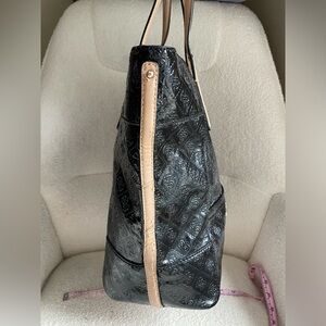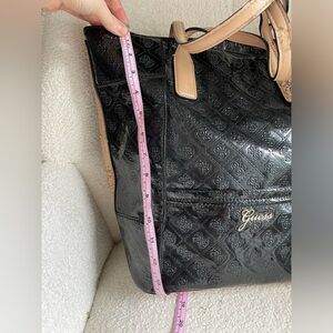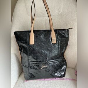 Y2K Guess Reiko Large Tote bag in black patent leather with tan straps