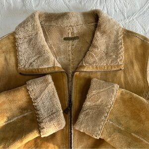 Y2K Guess Suede Jacket Women's Medium Faux Shearling Lace Trim Vintage 90's