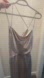 Slip dress with spaghetti straps and a draped cowl neck. Double lined with a slit at the front. The fabric is so airy and drapes so beautifully with a silver colour that catches light beautifully.