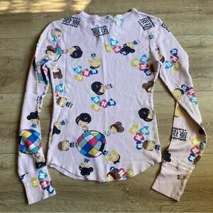 Y2K Harajuku Lovers pink thermal waffle knit long sleeve teeshirt Kawaii