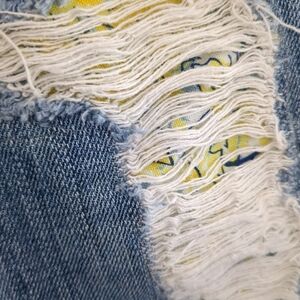 Y2K Holliester Denim Skirt with Frayed Hem Womens Size 9L Patch Skater Grunge