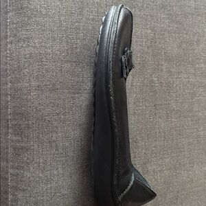Step into vintage elegance with these classic black leather flats from Hush Puppies, circa 2007. Featuring a charming floral detail on the toe and a cozy quilted purple lining, they’re the perfect mix of comfort and style.