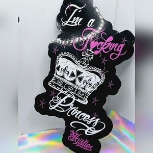 Bought in the US in the 2000s, pink punk rock Hustler magnets! One says "I'm just here to f*cking party" (measures at just over 5" tall & 4" wide) and the other says "I'm a f*cking princess" (measuring 6" tall & 3" wide). If you love fun, unique magnets for your fridge or anywhere that's magnetic, these are ones to treasure!