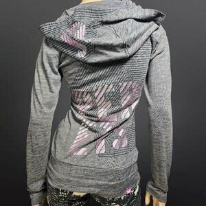 Y2K Joshua Perets Grey Pink Fitted Hoodie Size M Emo Scene Indie Sleaze 2000s