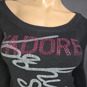 Y2K Joshua Perets Mini Sweater Dress size XS Black Pink Rhinestones Emo Mcbling