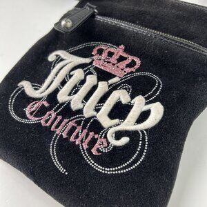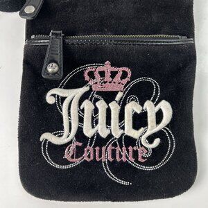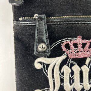 Y2K Juicy Couture Crossbody Bag Small Purse Vintage Black Velour Pink Sparkle