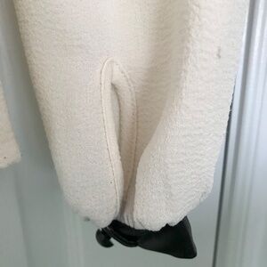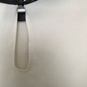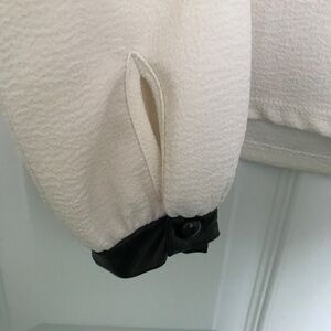 Round neckline black accent. Keyhole design at the back and on the sleeve cuffs. Size small. Sheer material.