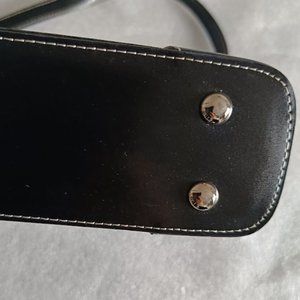 Attractive shoulder hand bag with canvas blocks and white stiching to compliment many outfits.