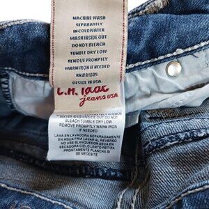 Crafted from a comfy 97% cotton / 3% elastane blend with a touch of stretch for a flattering fit. Classic mid-rise with a 7" rise, 13" flat waist, and 17.5" hips. Genuine leather “USA” back patch adds signature LA Idol style.