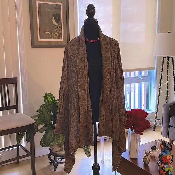 Y2K LINK shawl collar open concept knitwear in brown & tan color mix 🧶