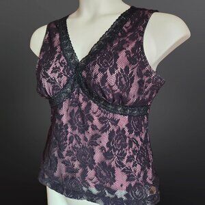 Y2K Lace Tank Camisole Top Size L Black Pink Whimsigoth Gothic Fairy 2000s