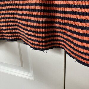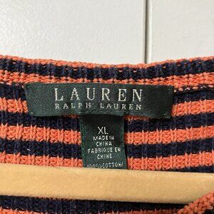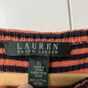 Y2K Lauren Ralph Lauren Sweater Womens XL Orange Black Stripe Boat Neck Fall