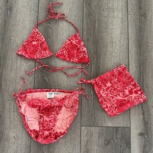 Y2K Le Chateau Red and Pink Bikini Set with Adjustable Ties one size