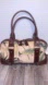 Vintage Liz Claiborne Tan with green leaves design. Brown leather trims and handles