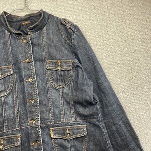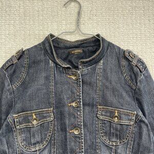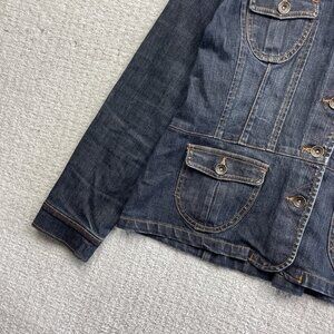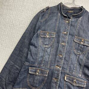 Y2K Lois Jeans Jacket Women's XL Dark Blue Military Style Denim Buttons Pockets