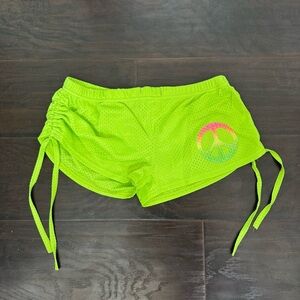 Y2K Malibu Beach Neon Green Mesh Micro Booty Shorts with Peace Sign M