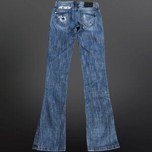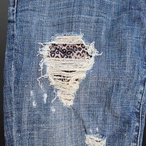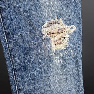 Y2K Marciano Low Rise bootcut Jeans Leopard Print Patches Size 25 Mcbling Trashy
