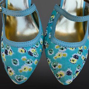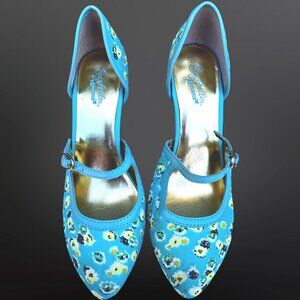Y2K Mary Jane Heels Seychelles Size 7 Turquiose Dainty Floral Coquette Feminine