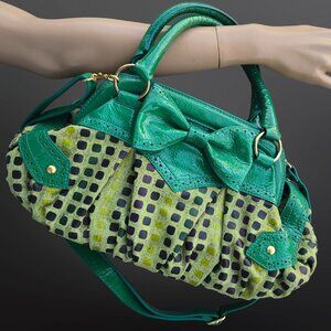 Y2K Matteo Mio Green Top Handle Bag With Bow Mcbling Fairy Faux Leather Canvas