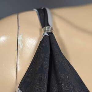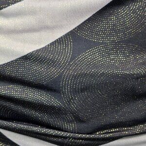 Y2K McBling Black Gray Tank Top Gold Glitter Swirl Print Size M Ruched V Neck