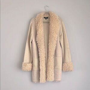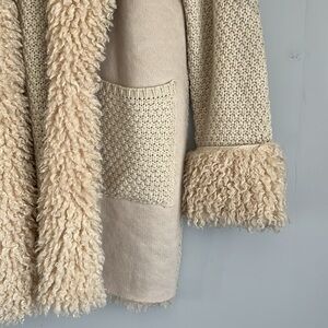Stay cozy and stylish with this cream shearling coat. Perfect for chilly days, it offers both warmth and elegance.