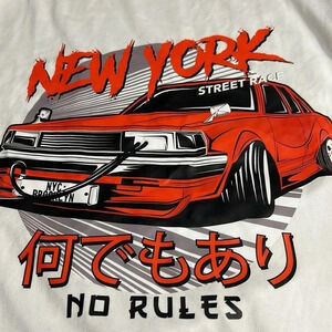 Y2K, NWT, ROMWE,Tee shirt,men L. Huge car logo print,gym, casual, no rules, NY