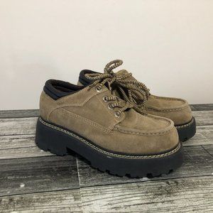 Y2K Nevada Brown Suede Leather Lace Up Platform Sonny Shoes Size 8