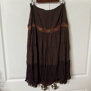 Y2K Newport News Midi Skirt Womens 12 Tiered Brown Fairy Boho Whimsigoth 2000s