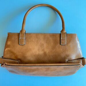 Step into the 2000s with this classic Nine West baguette purse in a rich cognac tan brown. Made from high-quality faux leather PVC, this Y2K shoulder bag is perfect for adding a nostalgic yet timeless touch to any outfit. Its sleek, minimalist design makes it a versatile staple for day or night.
