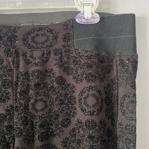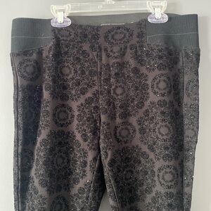 Y2K ONE 5 One Black Velvet Shimmer Leggings Stretchy Waist Size M Holiday Glam