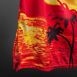 Y2K OP Mini Skirt Tropical Sunset Print Beach Cover Up Surf Size S Red Orange