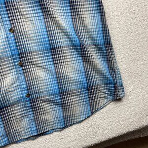 Y2K Oakley Blue Plaid Short Sleeve Button Down Shirt Mens 2XL Regular Fit. L'état est Pre-owned - Good. Expédition avec Canada Post Expedited Parcel.