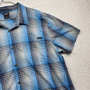 Y2K Oakley Blue Plaid Short Sleeve Button Down Shirt Mens 2XL Regular Fit