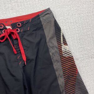 Y2K Oakley Board Shorts Mens 30 Black / Red 2000's Style Swim Trunks Surf