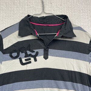 Y2K Oakley Embroidered Men's Blue / Grey Stripped Polo T Shirt Read* Golf