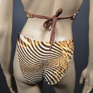 Y2K One Piece high Cut Leopard Print Swimsuit Womens Size S Deep V Lace Up