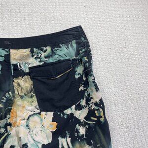 Y2K Oneill Board Shorts Mens 34 Blue / Black Floral Swim Trunks Beach Surfing