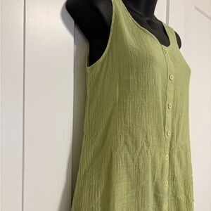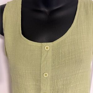 Elevate your wardrobe with this stylish sleeveless green top. Featuring a button-down front, it's perfect for casual outings or layering. Enjoy comfort and style in one piece.